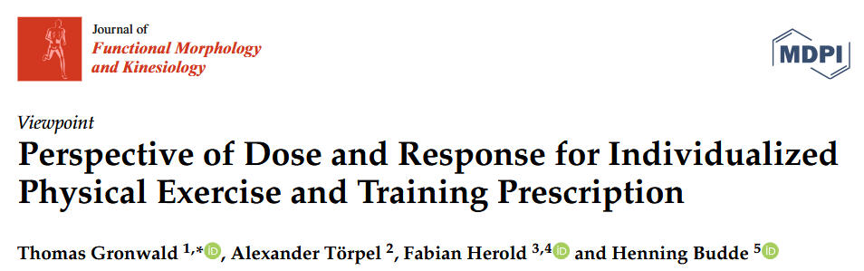 Gronwald, T., Törpel, A., Herold, F., & Budde, H. (2020). Perspective of Dose and Response for Individualized Physical Exercise and Training Prescription. Journal of Functional Morphology and Kinesiology, 5(3), 48. https://doi.org/10.3390/jfmk5030048