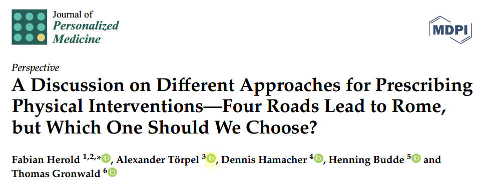 Herold, F., Törpel, A., Hamacher, D., Budde, H., & Gronwald, T. (2020). A Discussion on Different Approaches for Prescribing Physical Interventions - Four Roads Lead to Rome, but Which One Should We Choose? Journal of Personalized Medicine, 10(3), 55. https://doi.org/10.3390/jpm10030055
