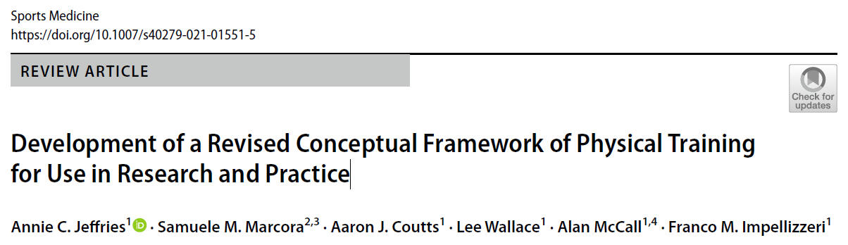Jeffries, A. C., Marcora, S. M., Coutts, A. J., Wallace, L., McCall, A., & Impellizzeri, F. M. (2022). Development of a Revised Conceptual Framework of Physical Training for Use in Research and Practice. Sports Medicine (Auckland, N.Z.), 52(4), 709–724. https://doi.org/10.1007/s40279-021-01551-5