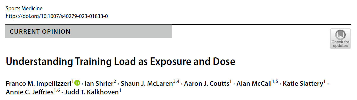 Impellizzeri, F. M., Shrier, I., McLaren, S. J., Coutts, A. J., McCall, A., Slattery, K., Jeffries, A. C., & Kalkhoven, J. T. (2023). Understanding Training Load as Exposure and Dose. Sports Medicine (Auckland, N.Z.), 53(9), 1667–1679. https://doi.org/10.1007/s40279-023-01833-0