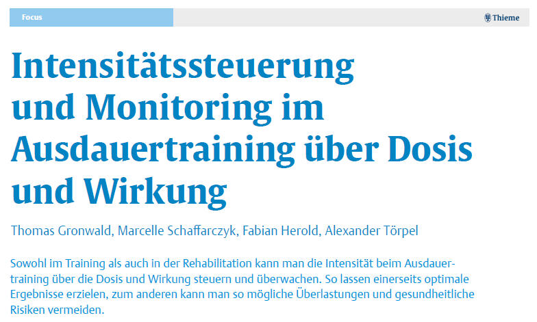 Gronwald, T., Schaffarczyk, M., Herold, F. & Törpel, A. (2025). Intensitätssteuerung und Monitoring über Dosis und Wirkung im Ausdauertraining – Praktische Perspektiven für Training und Rehabilitation. Sportphysio, 13(4), 175–189. doi: 10.1055/a-2625-2217